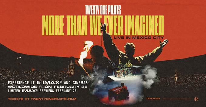 • Experience the electrifying Twenty One Pilots concert film, More Than We Ever Imagined, in IMAX and cinemas worldwide February 26, with limited IMAX previews February 25